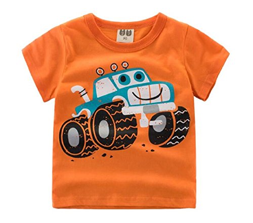 (美来Kids) 子ども服 男の子 キッズ Tシャツ 半袖 車 普段着 夏服 カジュアル 100 110 120 (110, オレンジ)