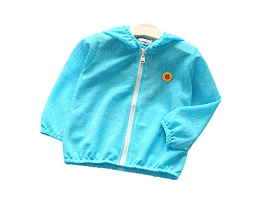 (美来Kids)子供 パーカー 男の子 女の子 キッズ ワンポイント 無地 パステルカラー 長袖 薄手 羽織り ジップアップ ファスナー フード付き (15(130), スカイブルー)