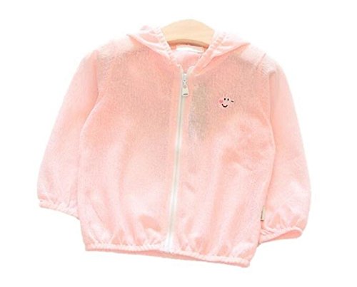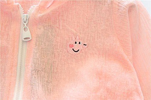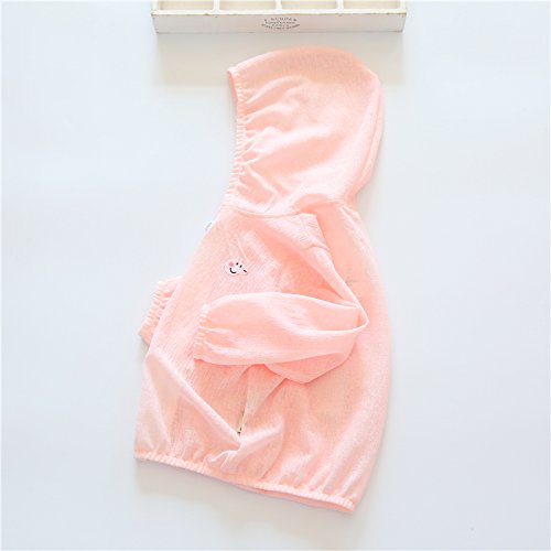 (美来Kids) 子供 パーカー 男の子 女の子 キッズ ワンポイント 無地 パステルカラー 長袖 薄手 羽織り ジップアップ ファスナー フード付き (9(100), ピンク)
