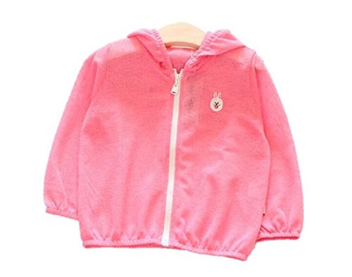 (美来Kids)子供 パーカー 男の子 女の子 キッズ ワンポイント 無地 パステルカラー 長袖 薄手 羽織り ジップアップ ファスナー フード付き (9(100), ローズピンク)