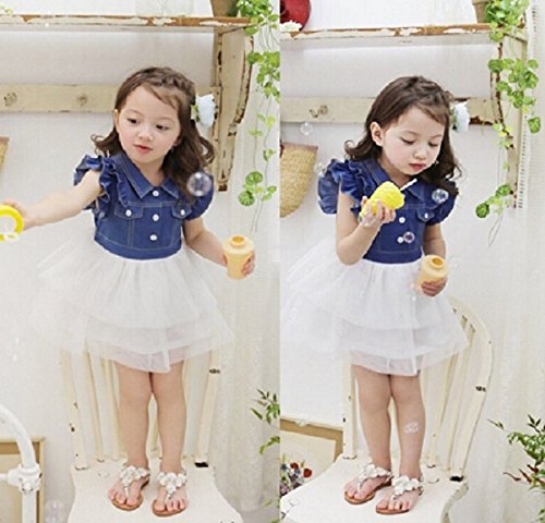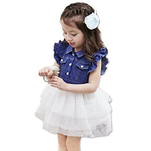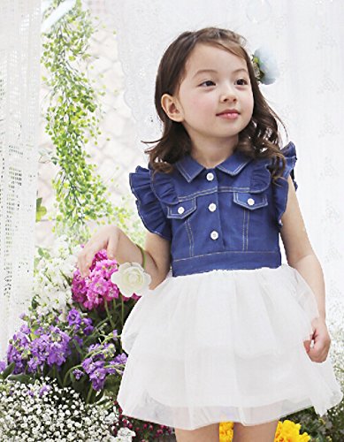 美来Kids 女の子 デニム 切り替え チュール ワンピース 半袖 キッズ ジュニア 子供 2色 (120, ホワイト)