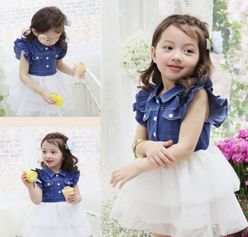 - カジュアルな印象のデニムシャツがチュールスカートとの切り替えで女の子らしいキュートなワンピースになりました。