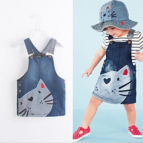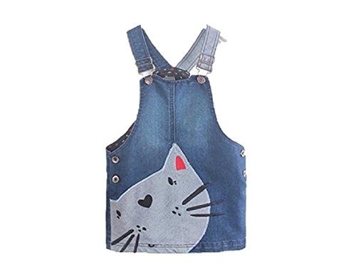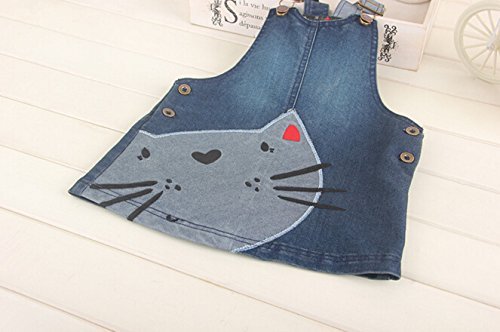 子供 ジャンパースカート デニム ワンピース サロペット ねこ柄 アップリケ付き (100)