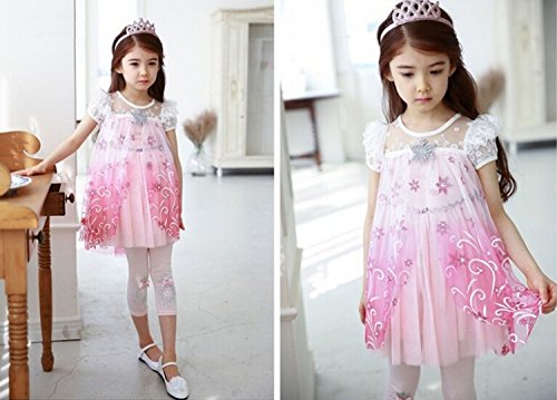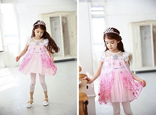 美来Kids 子供 アナと雪の女王 エルサ風 ドレス コスチューム ミニ丈 ワンピース (140, ピンク)