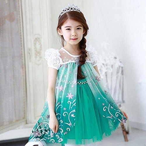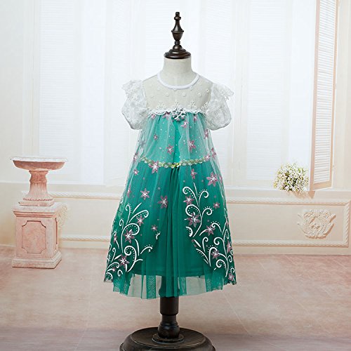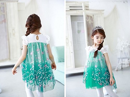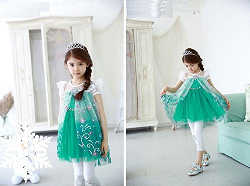 美来Kids 子供 アナと雪の女王 エルサ風 ドレス コスチューム ミニ丈 ワンピース (100, グリーン)
