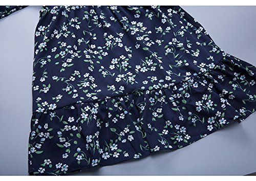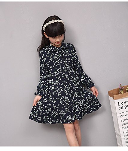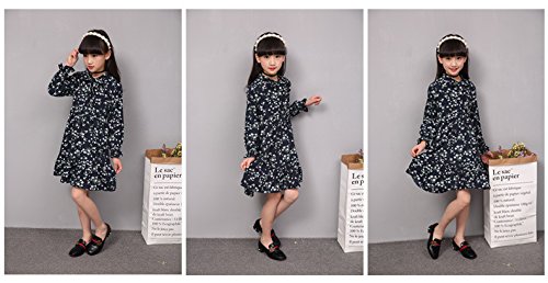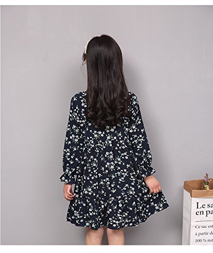 こども服 女の子 キッズ ジュニア ワンピース 花柄 長袖 リボン フリル シフォン (130)