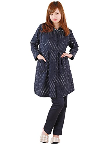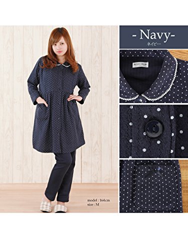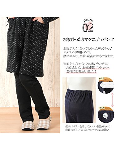 【6073647 ネイビーL】 ドット柄マタニティパジャマ ふんわりあったかソフトキルト素材