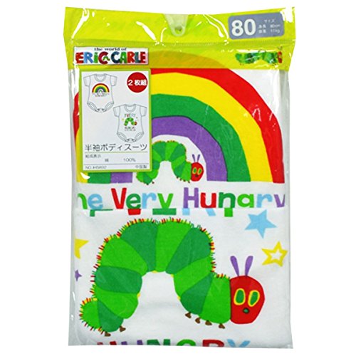 / ERIC CARLE(エリックカール)はらぺこあおむし半袖ボディスーツ2枚組です。 / 柄違いの2枚組なので洗い替えにオススメです。 / 股部分スナップ留め。 / 本体 : 綿100% / /