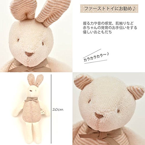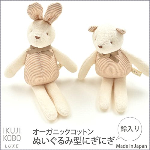 育児工房のオーガニックコットン ぬいぐるみ型にぎにぎです。 中綿入りで柔らかく、軽くて小さいお子様にも持ちやすいぬいぐるみタイプのにぎにぎ。 中に鈴が入っていてチロチロなるので赤ちゃんもごきげん。 赤ちゃんの握る力を育てたり音が鳴ることで発育につながるアイテムです。 かわいくて安全なファーストトイはオーガニックコットン素材なら、ママも安心。 贈り物にもおススメです サイズ : 約20cm ※綿衣料品の特性上、個体差がある旨ご了承ください。 素材 : オーガニックコットン100%(中わた:ポリエステル100%) カラー : ナチュラル×ブラウン 原産国 : 日本
