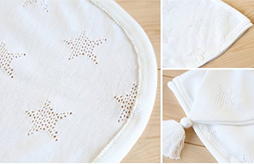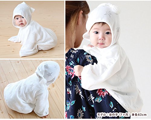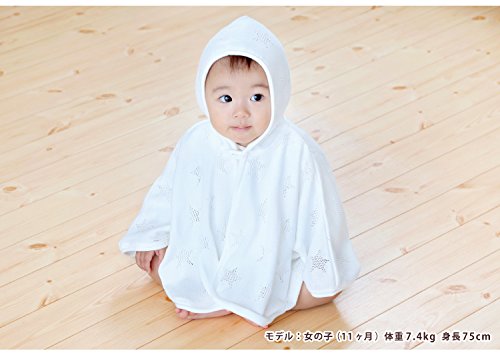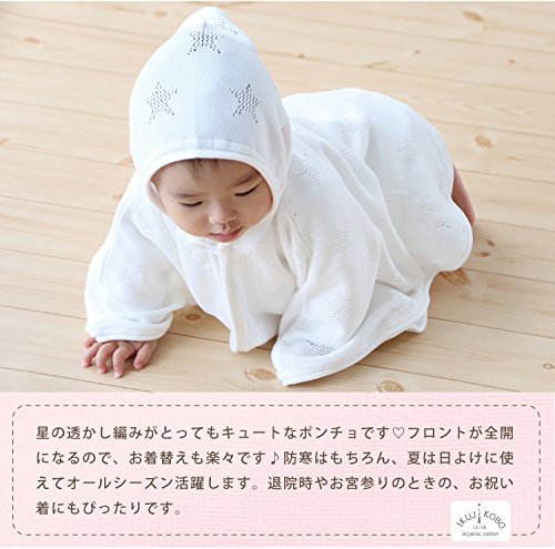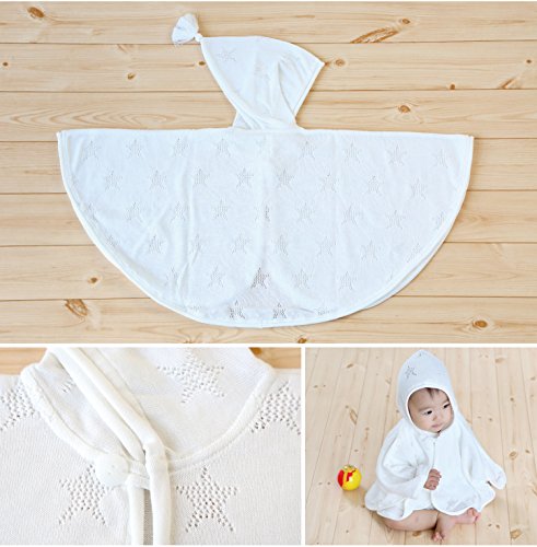 - フェザーコットンを使用した、星の透かし編みがキュートなポンチョです。退院時やお宮参りなどのセレモニーにぴったりです。