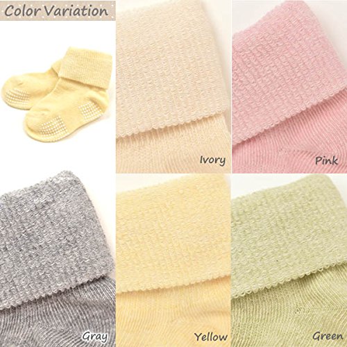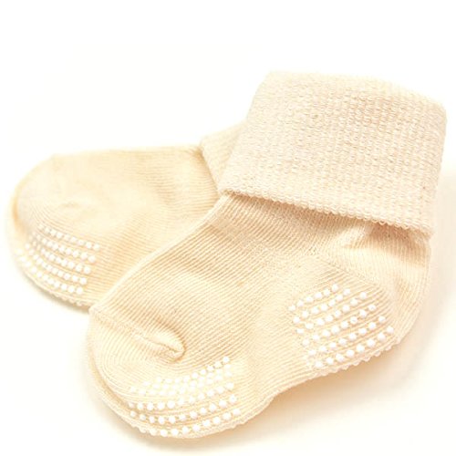 育児工房のオーガニックコットン ベビー折り返しソックス 滑り止め付きです。 足首から踵の上下にゴムが入っているので、やさしくフィットして脱げにくくなっています。 足裏には滑り止めつきなので歩き始めの赤ちゃんにも安心 植物から抽出した天然染料を使って、糸にする前のわたの状態で染める洛陽染めで染色しました。 天然染料のやわらかい色合いが、赤ちゃんの足元をかわいく引き立ててくれます。 洛陽染めの技法により従来の天然染めより色褪せしにくいのが特徴です。 サイズ : 9-12cm ※綿衣料品の特性上、個体差がある旨ご了承ください。 素材 : オーガニックコットン88% ポリエステル10% その他2% カラー : アイボリー・ピンク・グレー・イエロー・グリーン 原産国 : 日本
