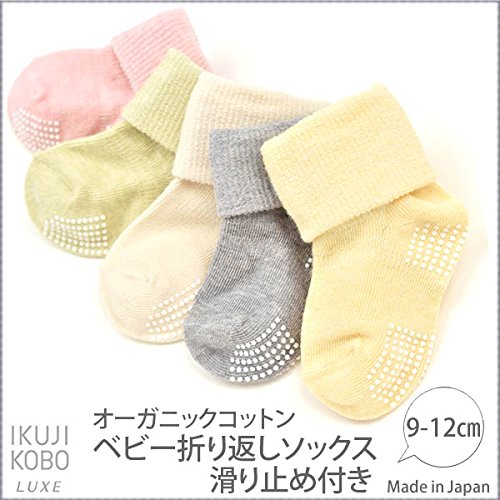 育児工房 オーガニックコットン ベビー折り返しソックス 滑り止め付き 9-12cm ピンク