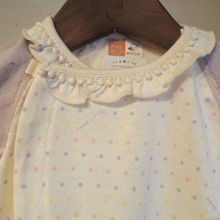 3、安全性・機能性・おしゃれ性を考えたコンビ肌着とベビードレスを一体化したものです。