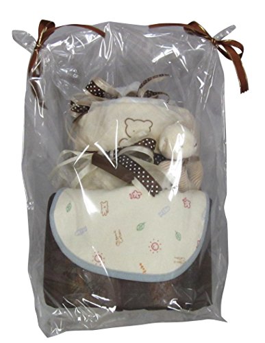 - オーガニックおむつケーキのセット内容は、 ①無農薬コットンを使ったおしゃれな吊天竺スタイ(よだれかけ)、②かわいらしいクマまたはウサギのにぎにぎ、③やわらかな肌触りのオーガニック知多木綿ガーゼハンカチ、④パンパースのおむつS:21枚です。