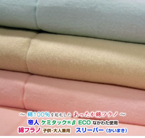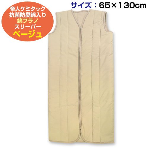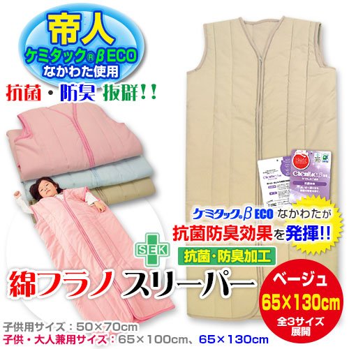 メーカー直販 帝人ケミタック わた使用 抗菌・防臭綿入り 子供用 ロング綿フラノ スリーパー(かいまき) 大サイズ 65×130cm (ベージュ)