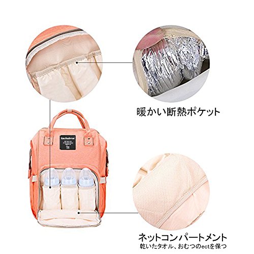 Kachabrosマザーズバッグママバッグリュックハンドバッグおしゃれ多機能大容量シンプル防水大容量軽量ベビー用品収納ママバッグ出産準備出産祝い良いデザイン (オレンジ)