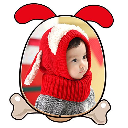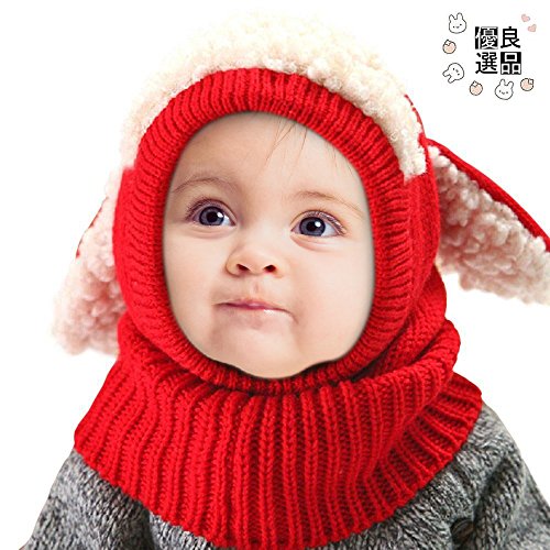 良品優選 ニット帽 赤ちゃん ヒツジ耳付き うさぎちゃん 可愛い アニマルフード ネックウォーマー 一体型 ふわふわ 防寒 プレゼント ハロウィン コスチューム 子供用秋 冬 男女兼用 5色選べる レッド