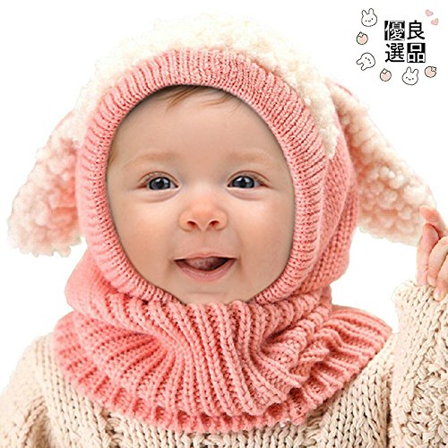 良品優選 ニット帽 赤ちゃん ヒツジ耳付き うさぎちゃん 可愛い アニマルフード ネックウォーマー 一体型 ふわふわ 防寒 プレゼント ハロウィン コスチューム 子供用秋 冬 男女兼用 5色選べる ピンク
