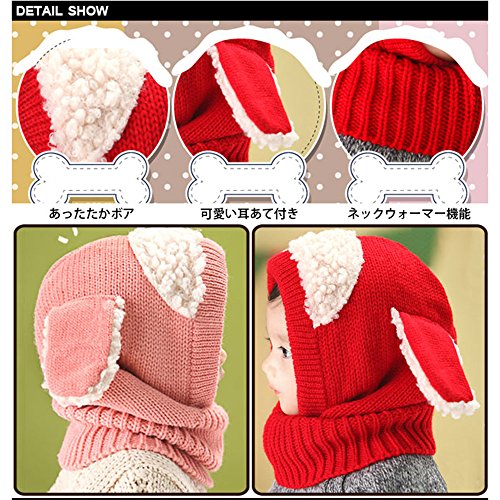 - 【防寒抜群】帽子とマフラー一体化の保温デザインニット帽です。しっかりと編んであるので風も通しにくく、お子様の頭だけではなく、耳や首回りも暖かくお守りします。