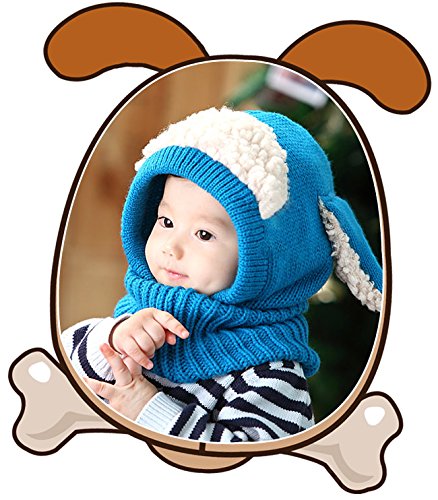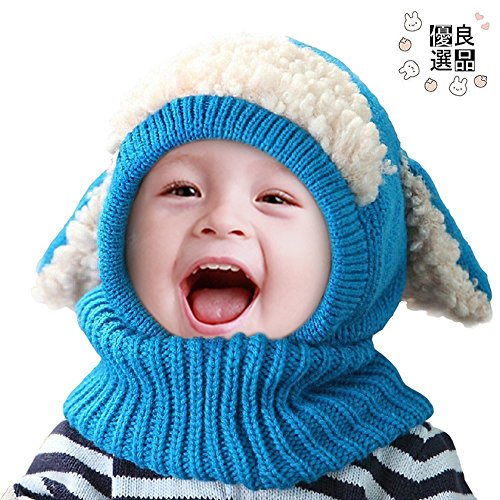 良品優選 ニット帽 赤ちゃん ヒツジ耳付き うさぎちゃん 可愛い アニマルフード ネックウォーマー 一体型 ふわふわ 防寒 プレゼント ハロウィン コスチューム 子供用秋 冬 男女兼用 5色選べる ブルー