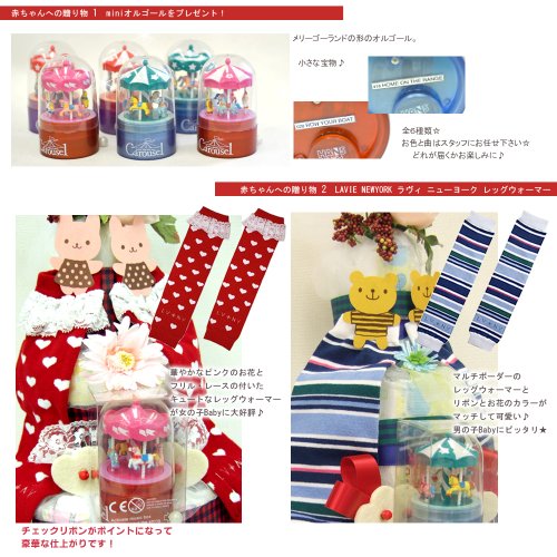 - メリーゴーランドの形のミニオルゴールと、マルチボーダーのブルーのレッグウォーマー♪