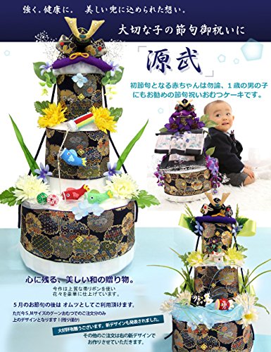 端午の節句限定品おむつケーキ『源武』3段型。ちりめん細工の兜と鯉のぼり,節句祝い[乗り物木製パズルプレゼント] L