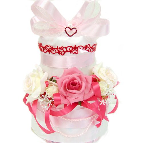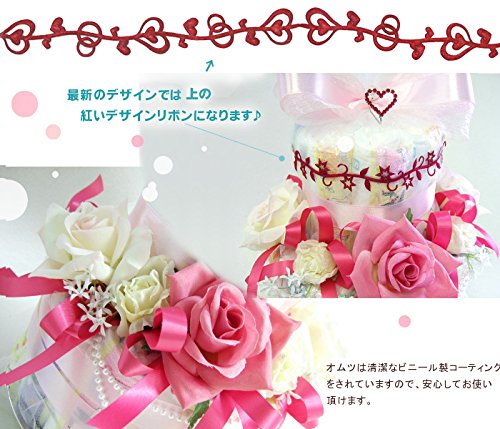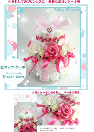 ニューヨーク(NY)スタイルの『プリンセス・トリア』おむつケーキ 煌めくハートとパールがエレガント!出産祝い 誕生日 L
