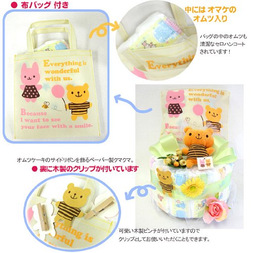 - 【作品の大きさ】 直径21cm・高さ22cm程度 おむつ枚数Lサイズ15枚程+おまけ2枚。