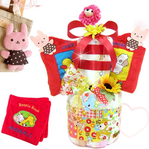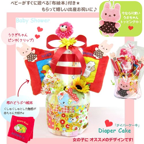 【うさぎぬいぐるみプレゼント中】知育布絵本『キャッシーキッシー』可愛く元気に!出産祝い2段オムツケーキ・ライト M