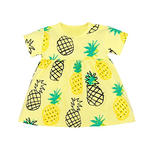 花千束 果物 子供服 ワンピース ベビー服 女の子 半袖 可愛い 韓国 キッズ 春/夏服 膝丈 チュニック 旅行/普段着/結婚式 出産祝い/誕生日/子供の日 プレゼント 80cm-110cm (110, イエロー)