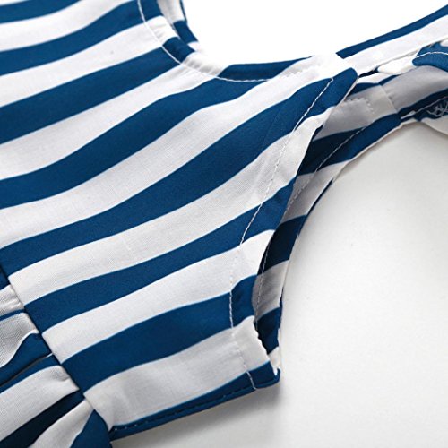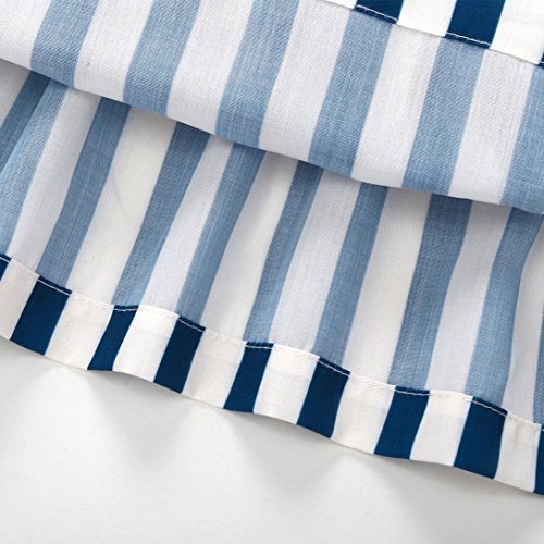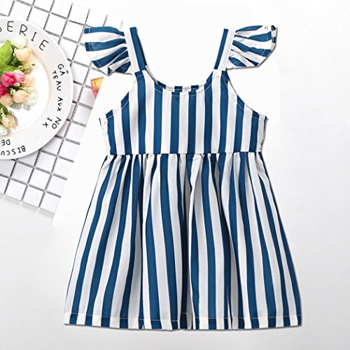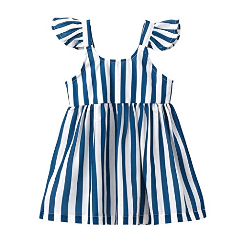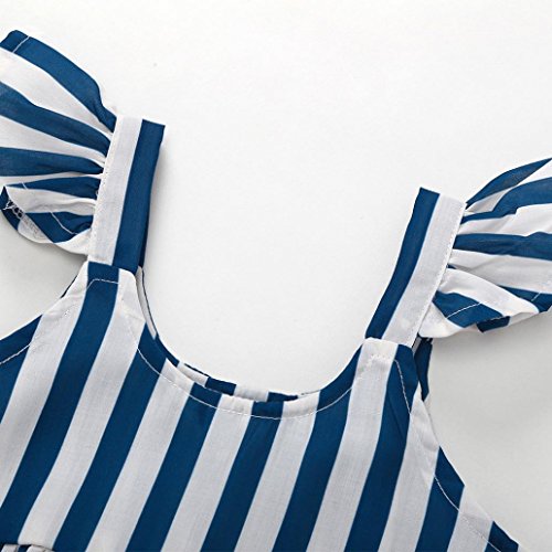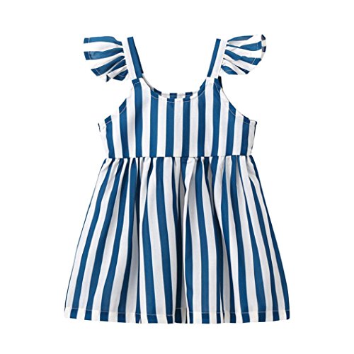花千束 ストライプ フリル ワンピース 女の子 膝丈 チュニック 子供服 ノースリーブ 春 夏 ガールズ 韓国風 可愛い ドレス 発表会 通園/通学 ビーチ/旅行 ベビー服 洋服 プレゼント 1歳-4歳 (80, ブルー)