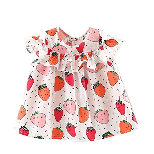 花千束 肩出し ワンピース ベビー服 女の子 子供服 半袖 韓国 キッズ 春/夏服 ガールズ ゆったり 子どもドレス 女 可愛い キッズ スカート 女の子用 プレゼント 70cm-100cm (90, ピンク)