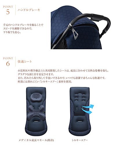 ・小児科医や理学療法士と共同開発したシートは、成長に合わせて自然な姿勢を保ち、グラグラな頭と首を安定させます。また、汚れたら取り外して手洗いできるので、いつでも清潔で赤ちゃんも快適です。座部には蒸れにくい「シルキーエアー」素材を採用。