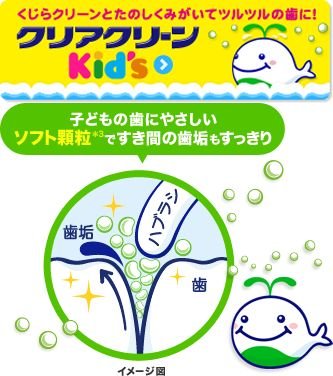 - 「花王 クリアクリーンキッズ グレープ 70g (医薬部外品)」は、ソフト顆粒(清掃剤)が、歯のすき間でくだけながら、やさしくしっかり歯垢を押し出します。