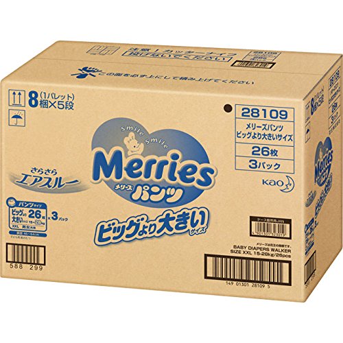 花王 メリーズパンツ さらさらエアスルー(15~28kgまで) ビッグより大きい (パンツ) 26枚×3