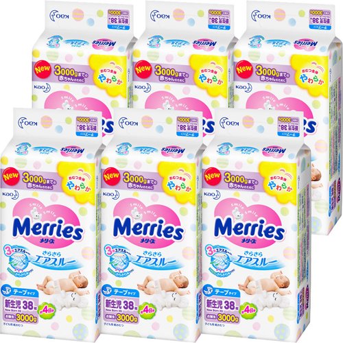【ケース販売】メリーズ さらさらエアスルー テープ 新生児3000gまでサイズ 38枚×6パック (228枚入り)