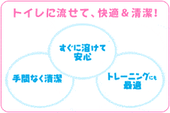 うんちとおしりふきを分けずにまとめて一緒にトイレに流せるから、