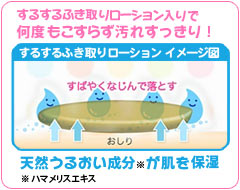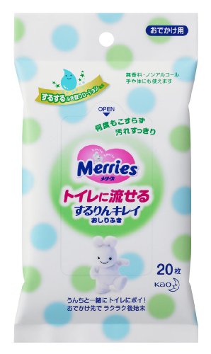 [花王 メリーズ 流せるするりんキレイおしりふき おでかけ用 20枚]は、何度もこすらず、汚れすっきり。