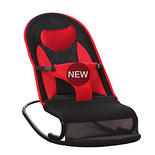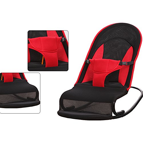 新生児 バウンサーバランス ベビーチェア 3点式シートベルト専用 乳幼児用 揺れ椅子 背もたれ チェア (レッド)