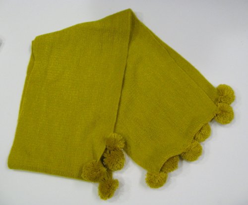 純毛 柔らか ポンポン付きマフラー 子供用 あったか キッズ (からし色)