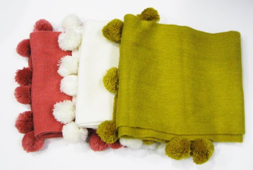 材質は純毛ですので、とっても暖かくて、かつ柔らかいです。 色もどれも暖かいやさしい色で、子供の可愛さを引き立ててくれます。 付いているポンポンは両サイトだけではなく、衿側も四個が付いていて、前、後ろに巻いてもさらに可愛さをアップしてくれます。