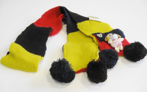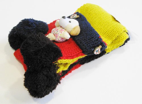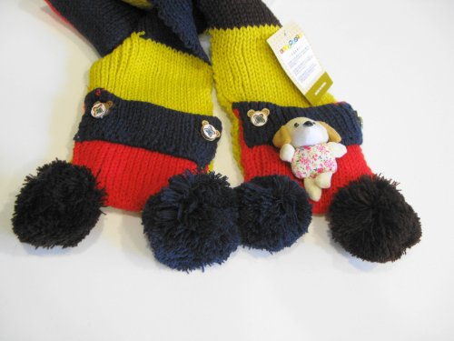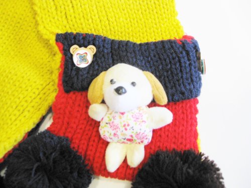 カラフル色のマフラー、小熊ちゃんブローチ付き。可愛くてたまらない。子供のファッションに大活躍になりそう!