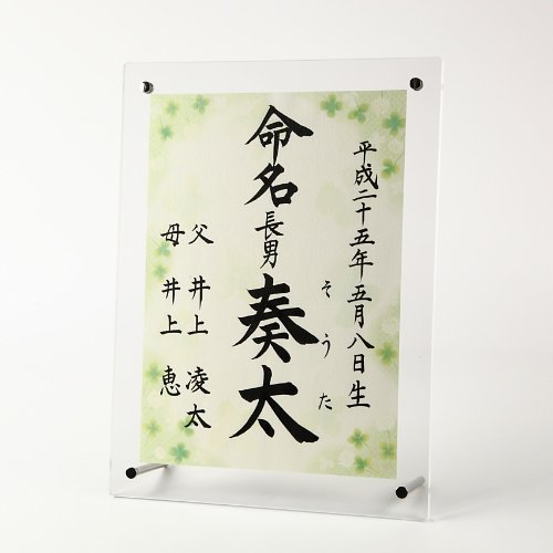 [萌舟] 毛筆代書付き命名書 しろつめ草 A4サイズ アクリルフレーム