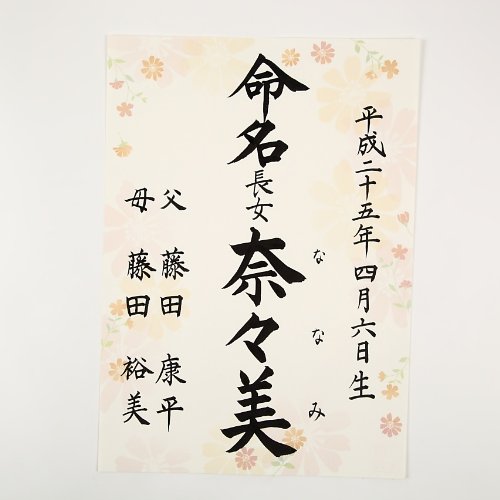 [萌舟] 毛筆代書付き命名書 A4サイズ フラワリー