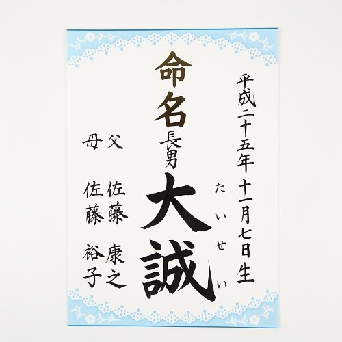 [萌舟] 毛筆代書付き命名書 A4サイズ 男の子用