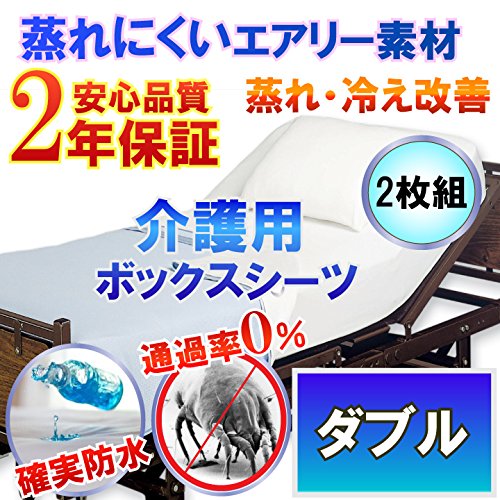 【即発送】【2枚組】 介護用 さらっと 防水 ボックスシーツ 防水シーツ ( ダブル )【国内公的検査機関で品質検査済(防水性 透湿性 ダニ通過率0%)】【防水+防ダニ+透湿性】体温調節の難しい方 長時間寝たきりの方へ【蒸れ 冷えなしのエアリー素材使用】で寝汗 臭い 汚れを遮断しダニ カビ発生の予防も! 寝汗 ニオイ 失禁 介護用ベッドに 自宅で洗濯 脱水可【2年間の品質保証書付】