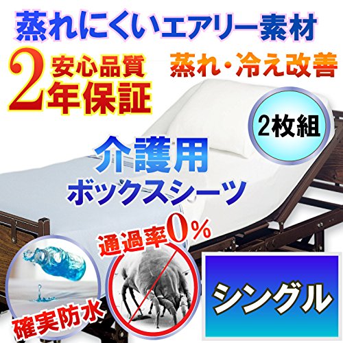 【即発送】【2枚組】 介護用 蒸れを逃がす さらっと 防水 ボックスシーツ 防水シーツ ( シングル シングルロング )【国内公的検査機関で品質検査済(防水性 透湿性 ダニ 通過率 0%)】【2年保証】【防水防ダニW効果】【蒸れ 冷え解消 エアリー素材採用】布団と人を守る 介護シーツ 脱水 乾燥 OK!寝たきりでも蒸れない為床ずれ予防にも 寝汗 黄ばみ ニオイ 失禁対策 介護用ベッド に