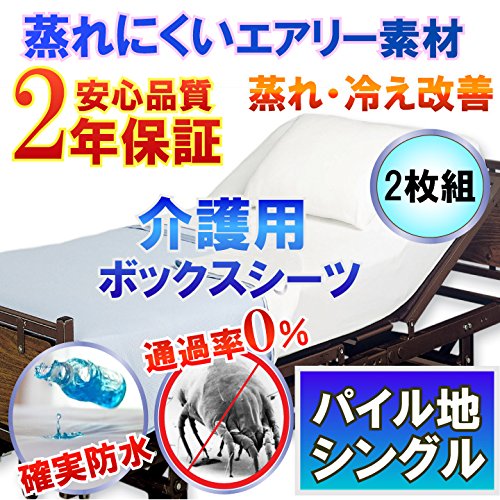 【即発送】【2枚組】 介護用 蒸れを逃がす パイル地 防水 ボックスシーツ 防水シーツ ( シングル シングルロング )【国内公的検査機関で品質検査済(防水性 透湿性 ダニ 通過率 0%)】【2年保証】【防水防ダニW効果】【蒸れ 冷え解消 エアリー素材採用】布団と人を守る 介護シーツ 脱水 乾燥 OK!寝たきりでも蒸れない為床ずれ予防にも 寝汗 黄ばみ ニオイ 失禁対策 介護用ベッド に タオル地