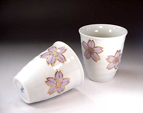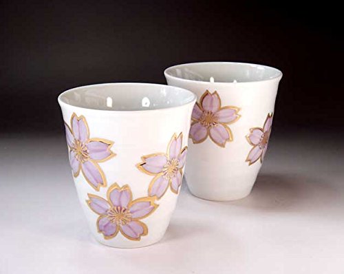 高級有田焼・伝統工芸品|釉裏紅金彩桜絵フリーカップペアセット|陶芸作家藤井錦彩