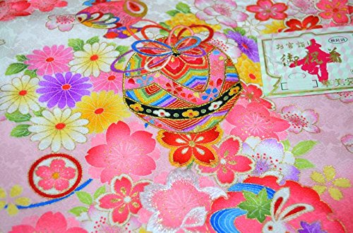- 白に綺麗なピンクのぼかし地。華やかな花が全体に描かれた女の子らしいお着物です。背の刺繍の手鞠柄が、とても高級感があります。うさぎや小花など可愛い柄が描かれています。桜の地紋が入った上質な絹生地を使用しています。華やかでモダンなお宮参り着物【初着 産着】になります。